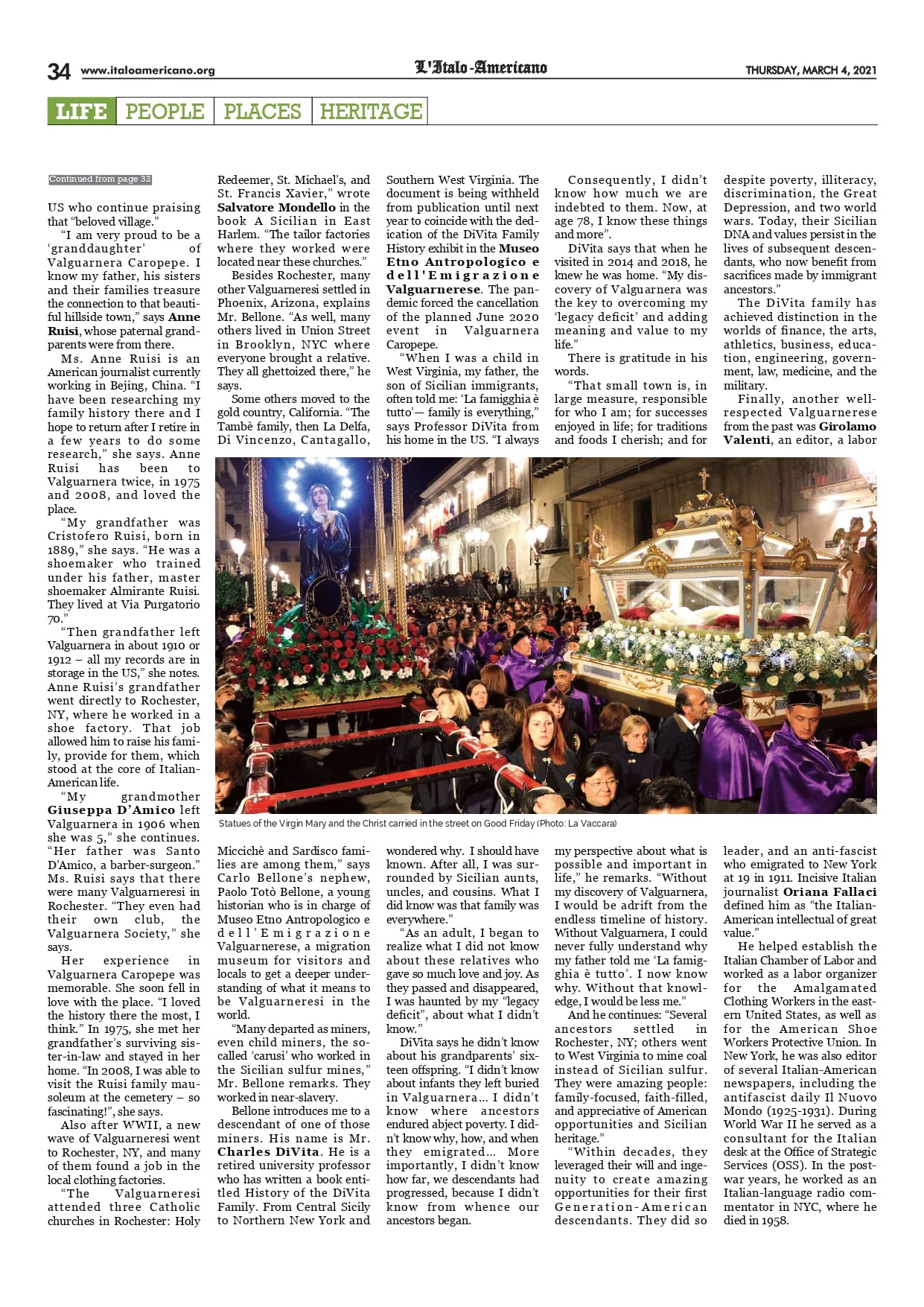 Questo è il titolo dell’interessante articolo di due pagine pubblicato su “L’ITALO-AMERICANO”, il più antico quotidiano italo americano negli Stati Uniti. Valguarnera com’è noto, è un paese che sorge nel cuore della bellissima Sicilia. Un luogo ricco di storia e particolarmente legato alle proprie tradizioni. Un luogo che come altri, nei primi del novecento e dopo la seconda guerra Mondiale, ha conosciuto il fenomeno emigratorio. Bene, tutto questo è stato scritto in maniera perfetta dalla giornalista Mariella Radaelli, che attraverso diverse interviste è riuscita a cogliere l’aspetto più importante, l’amore per le proprie origini, l’amore per il proprio paese, un amore che si continua a tramandare da generazione in generazione.