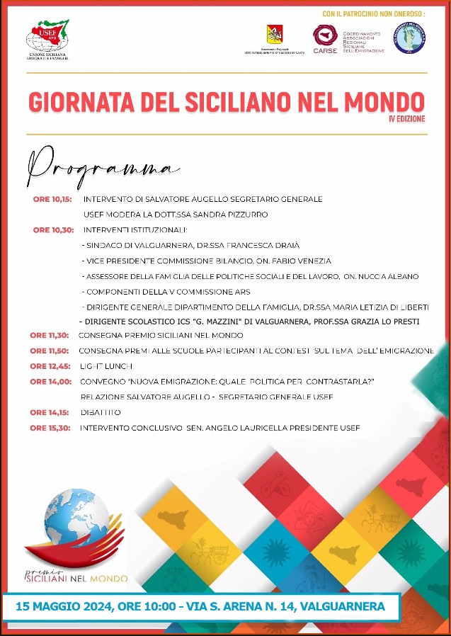 Mercoledì 15 maggio alle ore 10:00, presso il pittoresco giardino nel caratteristico quartiere di Sant’Antonino a Valguarnera Caropepe, prenderà avvio la quarta edizione della Giornata del Siciliano nel Mondo, organizzata dall’USEF e dal CARSE. Un’opportunità unica per celebrare e valorizzare le radici siciliane in un contesto internazionale.