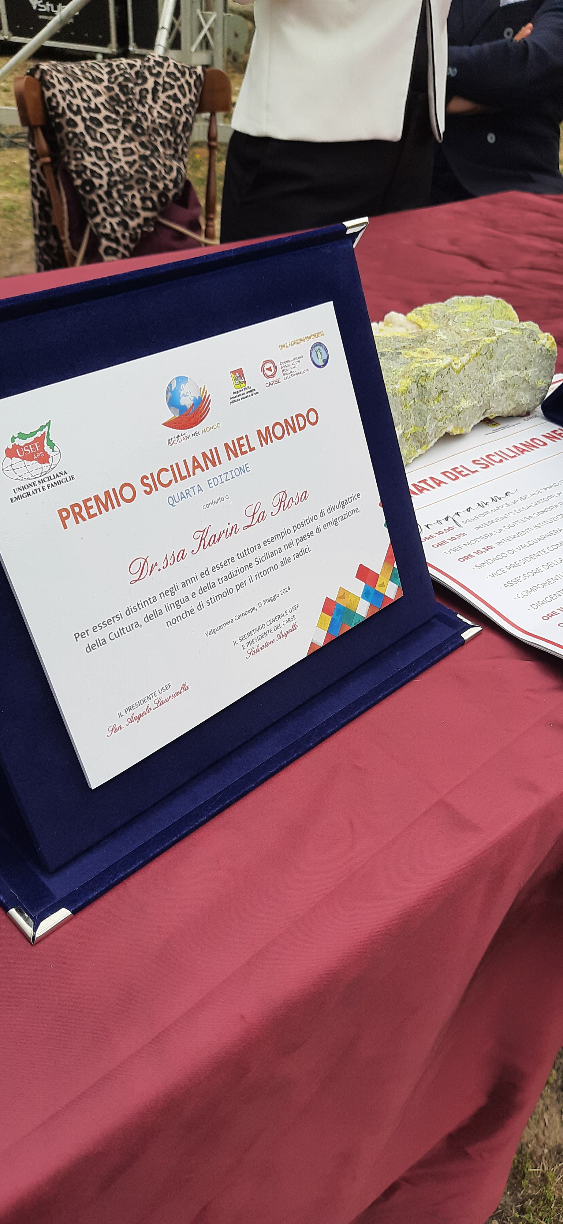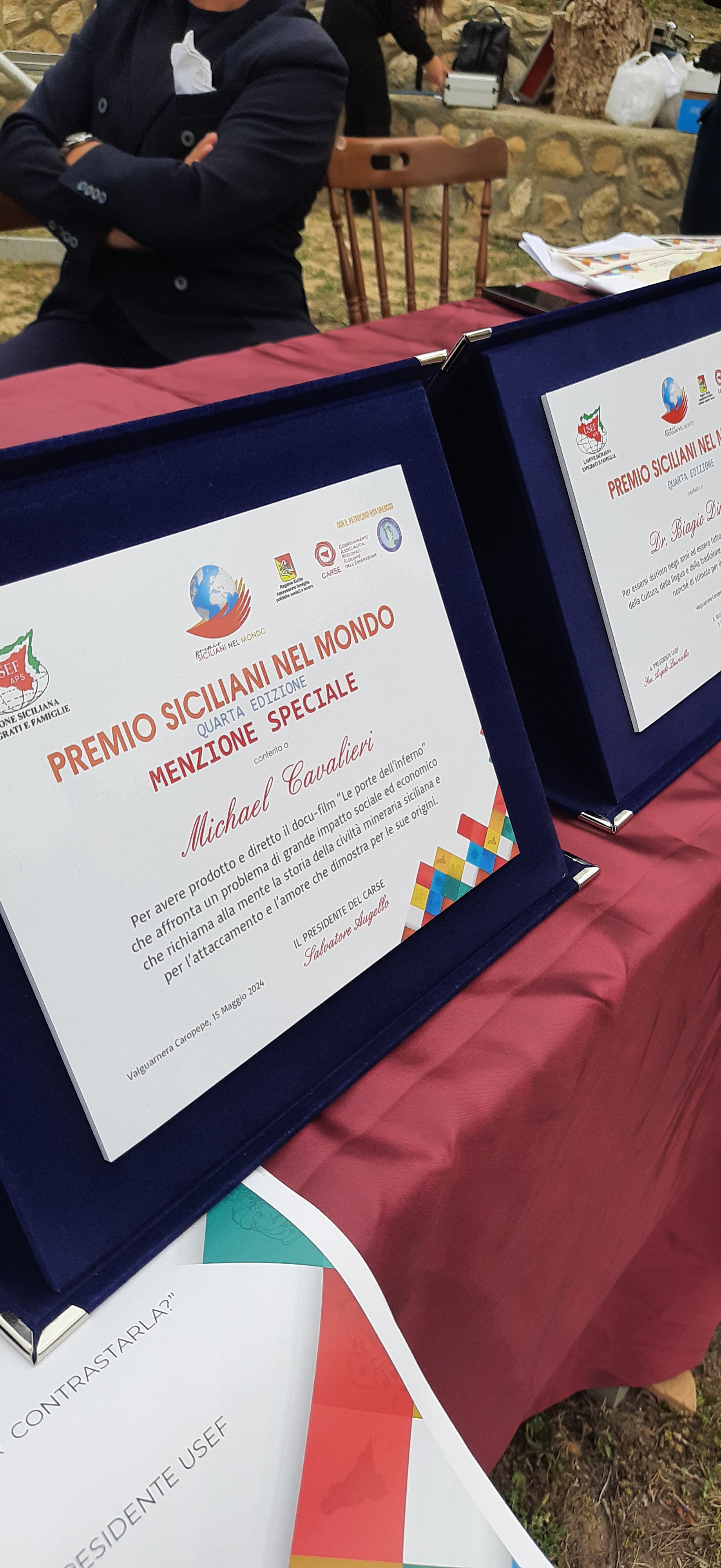 La manifestazione ha previsto l’assegnazione di attestati a 5 emigrati che si sono distinti all’estero mantenendo alta la sicilianità e la nostra cultura, un’occasione speciale per celebrare il loro impegno e il contributo prezioso che hanno apportato alla diffusione della cultura siciliana nel mondo. Presenti alla celebrazione i premiati, Daniela Di Benedetto residente a Monaco di Baviera, donna impegnata nell’associazionismo e nella politica, presidente del COMITES di Monaco e il regista e attore siculo americano Michael Cavalieri produttore e regista del doc-film “ la Porta dell’Inferno”. Collegato dall’Australia il Commentatore Tony Noiosi fondatore di diverse associazioni siciliane ed oggi presidente della federazione dei siciliani d’Australia che aderisce al CARSE, di cui Noiosi è coordinatore per il Nuovo Galles del Sud. Collegato in video anche il Dr. Gaetano Calà vice presidente del CARSE. Attestato di riconoscimento anche a Vincent Castagna, il cui nonno zolfataio emigrò negli Stati Uniti nei primi del novecento.